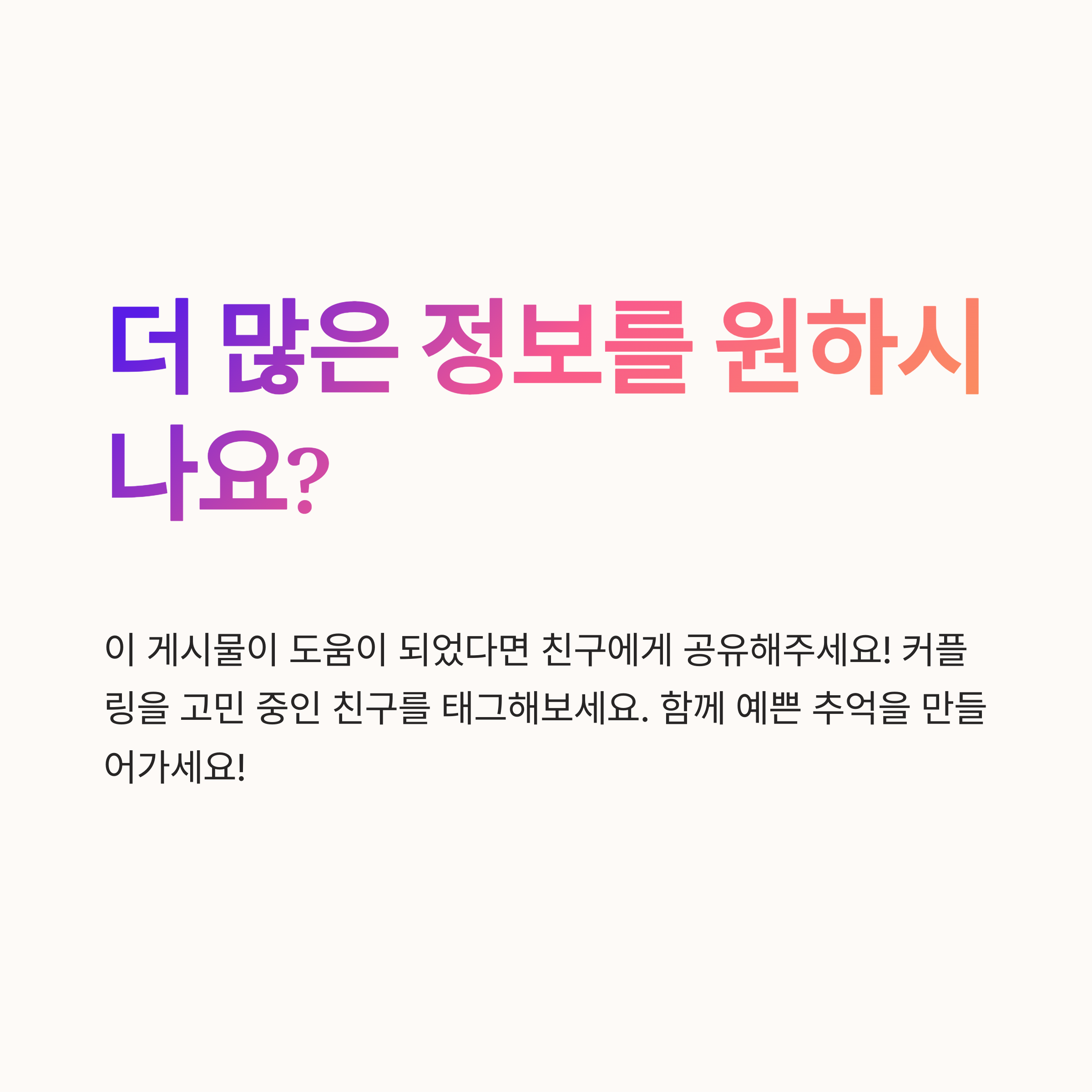 필요하다면 함께 매장에 방문해 직접 착용해보는 것도 좋은 방법이에요. 예쁜 커플링으로 둘만의 특별한 스토리를 만들어가세요!